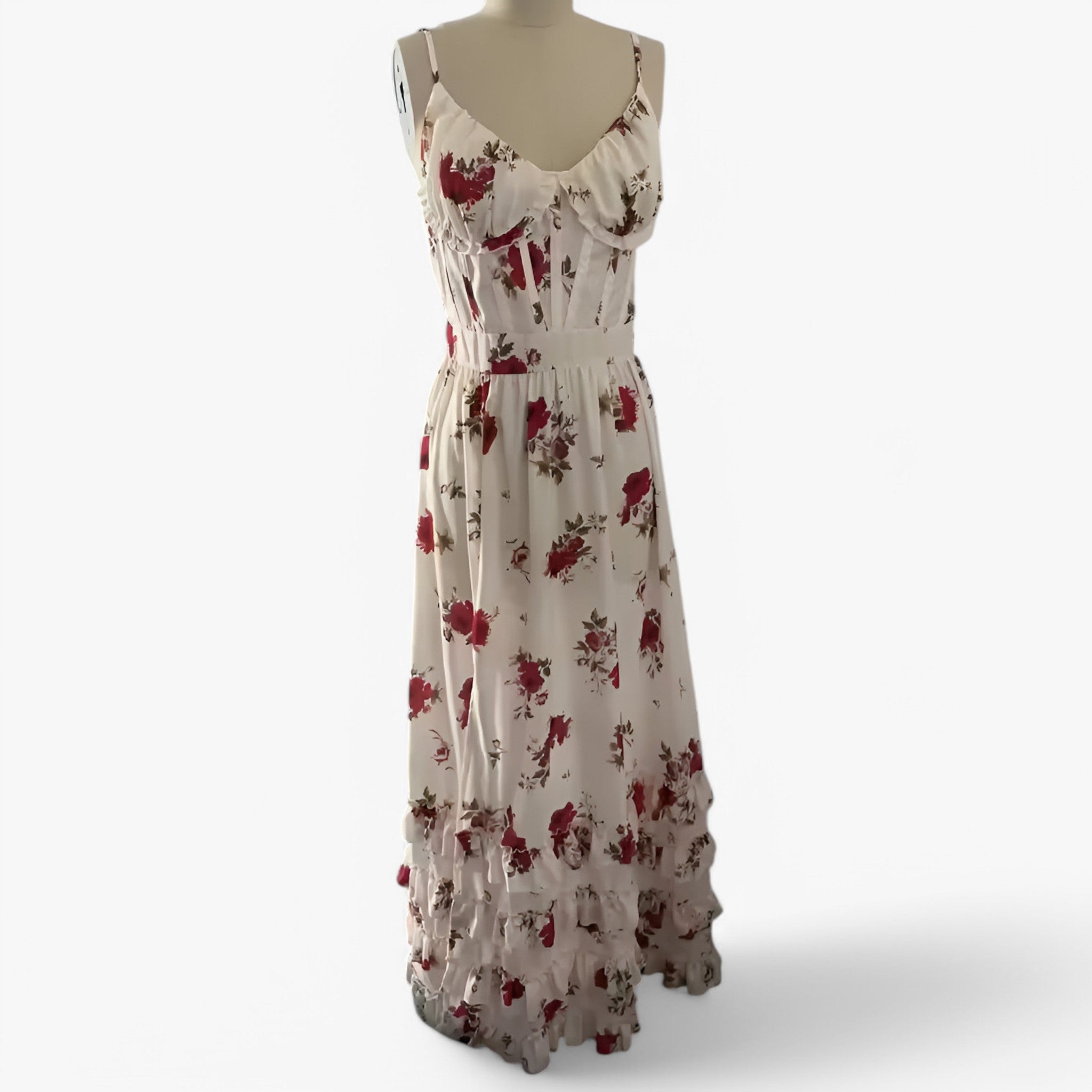 With a pattern inspired by European and American elegance, this dress stands out for its refined and original style.